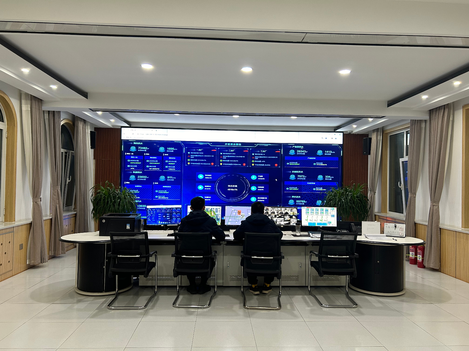 運行調(diào)度中心,通過智慧水務(wù)平臺,對水廠、加壓站等重點方位的供水水質(zhì)、水壓、流量等參數(shù)進行實時監(jiān)測和預(yù)警,對供水區(qū)域內(nèi)的水壓實施遠程自動監(jiān)視和控制,確保春節(jié)期間管網(wǎng)壓力平穩(wěn)。